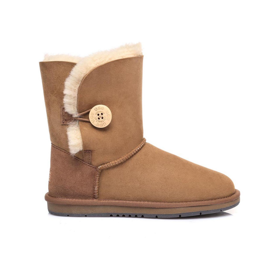 UGG Boots Short Button - Premium Australian Sheepskin, Water Resistant, Non-Slip - Chestnut - Au Ladies 4/ Au Men 2/ Eu35